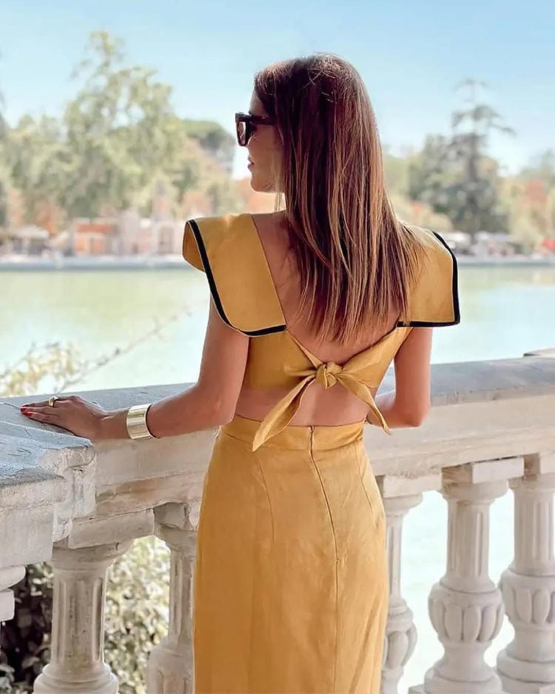PRINTED BACK KNOT MIDI DRESS