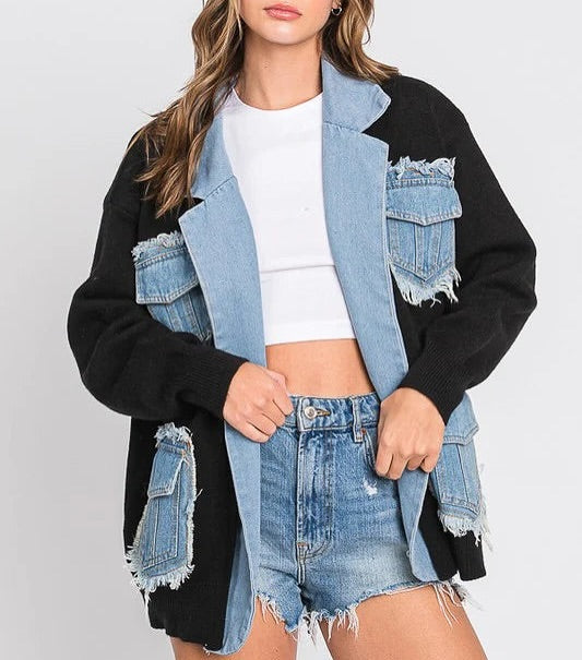 Zavi Denim Patchwork Cardigan